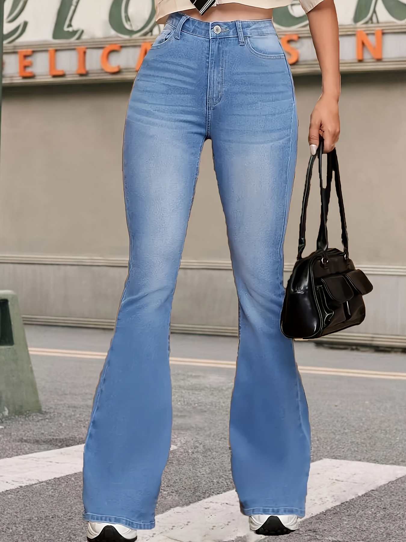 2025 New Fashion Elastic Light Blue Flared Jeans