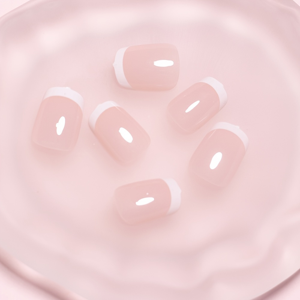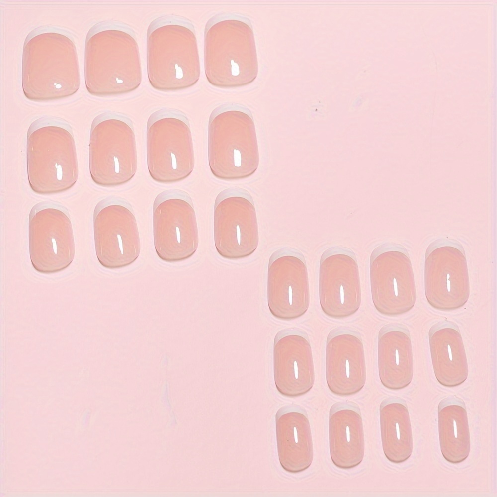 24pcs Pink & Nude Square Short Coffin Press-On Nails, Glossy Finish, Reusable & Durable French Style False Nails for Women, Easy Application, Long-Lasting, Ideal for Salon Or DIY Manicure |Bride Nails |Wedding Nails