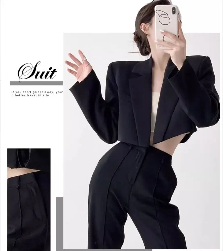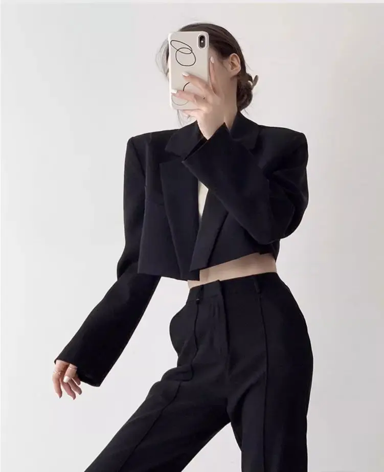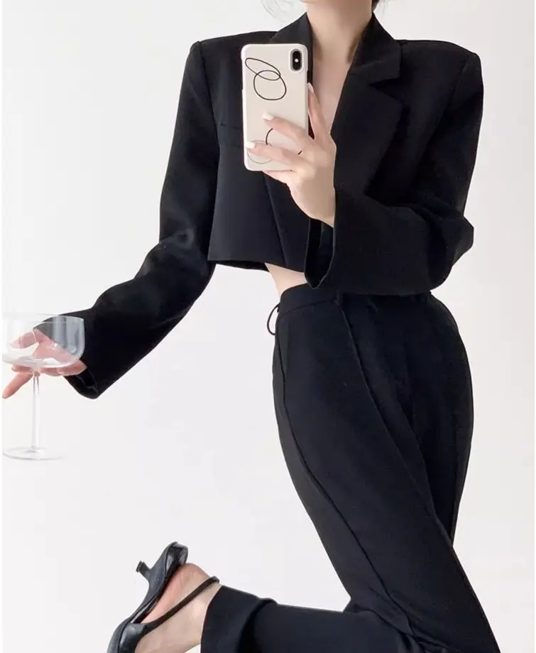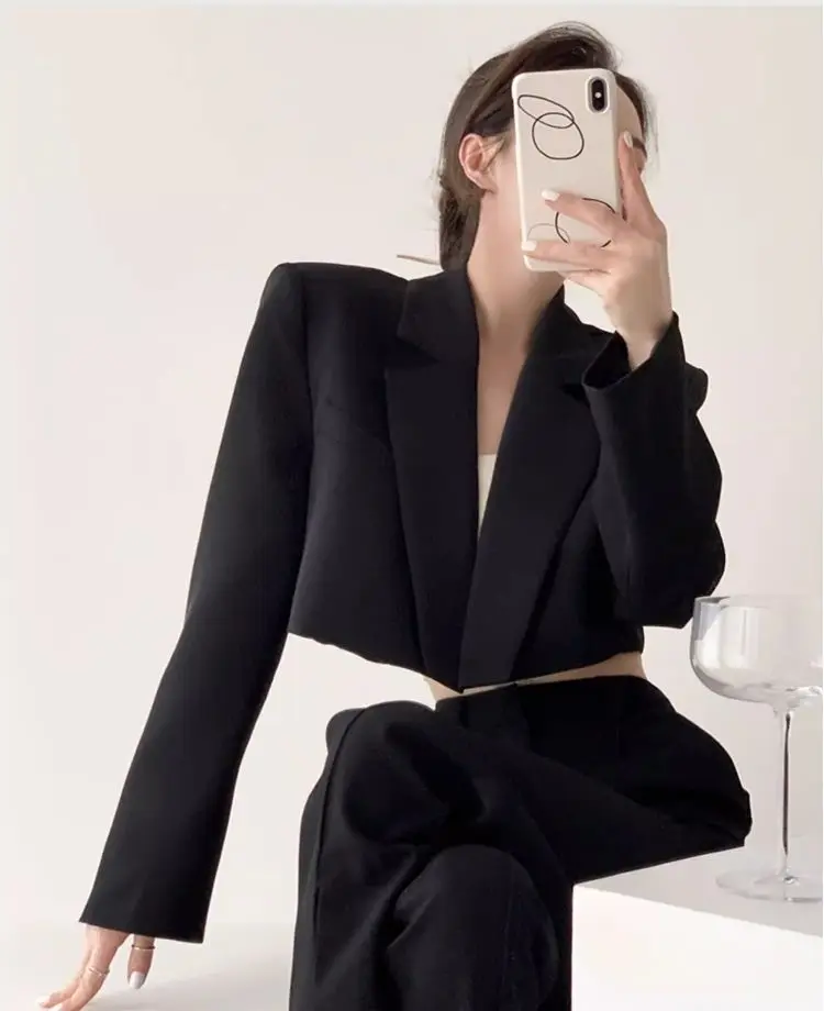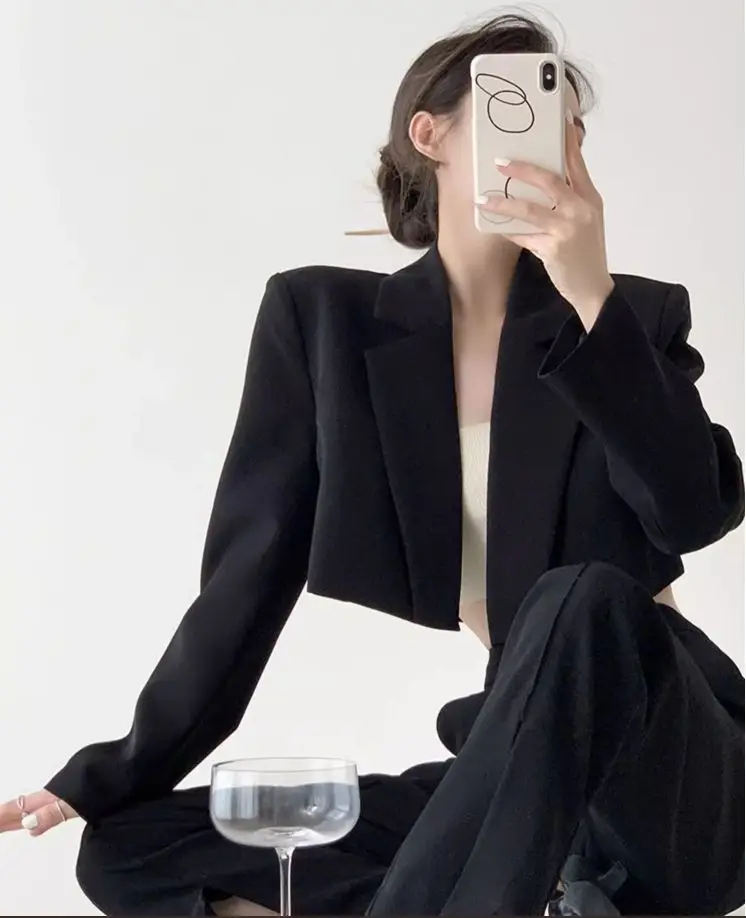 Fashion Women Short Blazer White Basic Jackets Top Elegant Solid Long Sleeve Open Front Coats Casual Short Outwear Office Coat