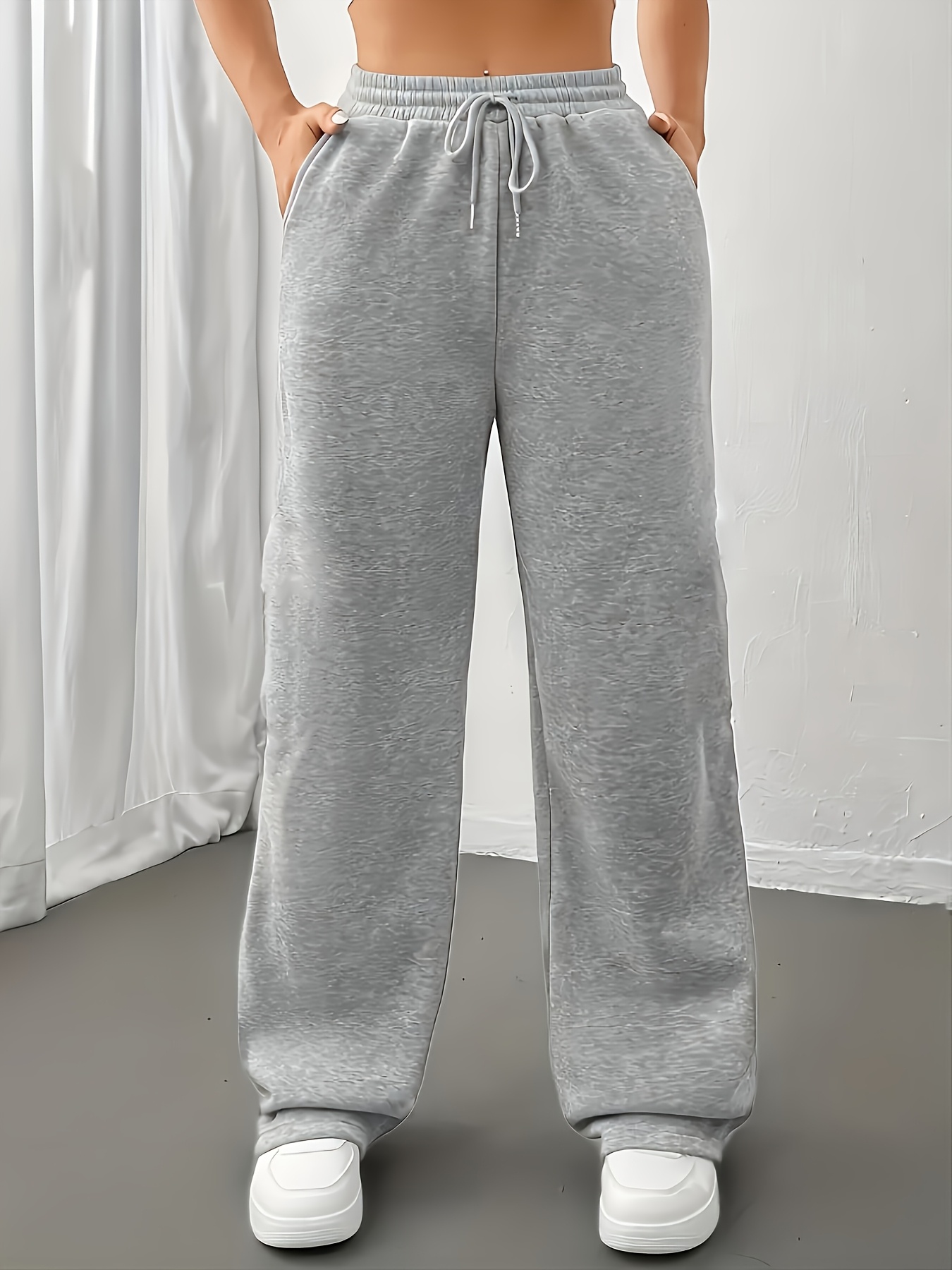 FLS0334 -Lined European and American Women's Long Pants, Loose-Fit Autumn/Winter Workwear Drawstring Casual Sweatpants