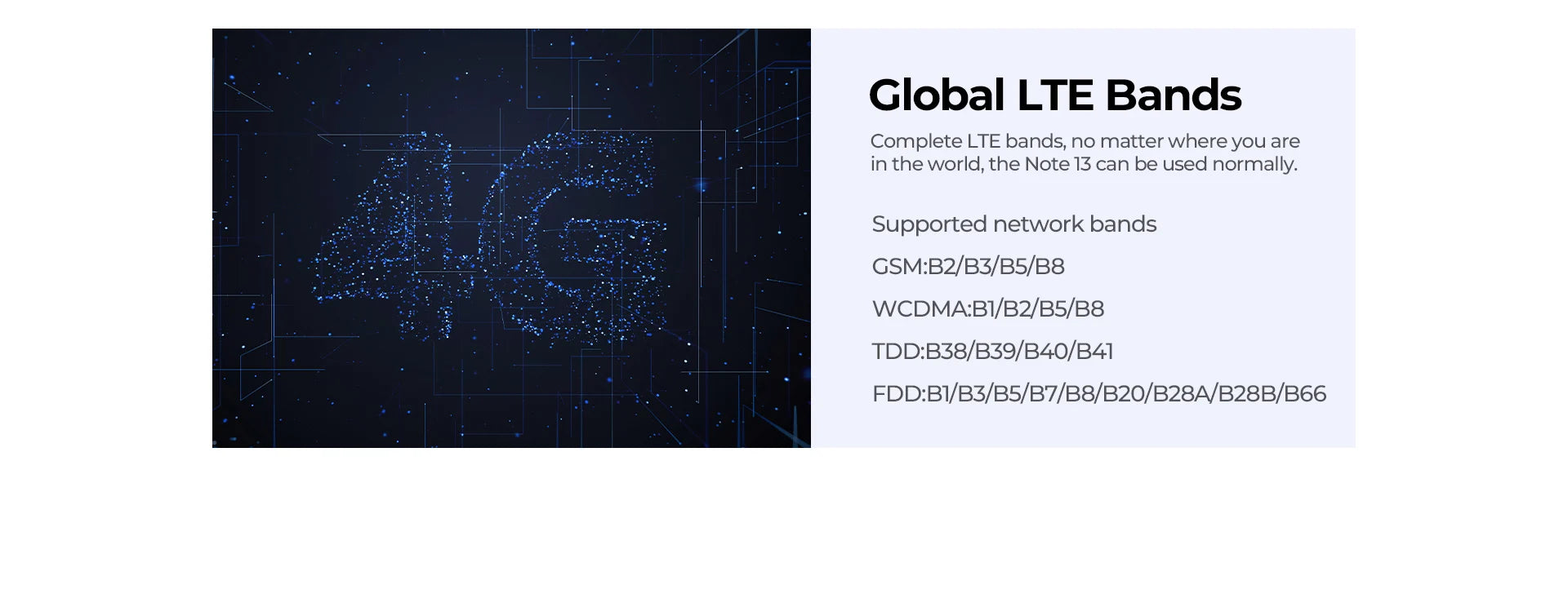 Complete LTE bands, no matter where you are in the world, the Note 13 can be used normally.