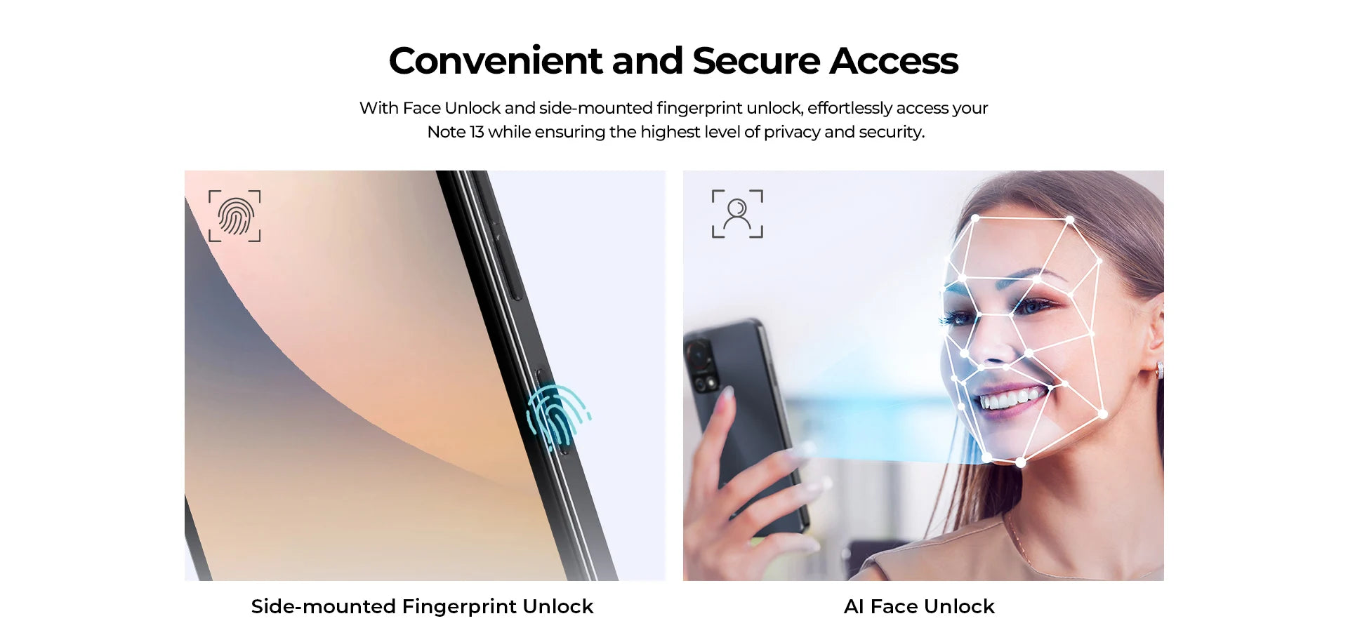 With Face Unlock and side-mounted fingerprint unlock, effortlessly access your Note 13 while ensuring the highest level of privacy and security.