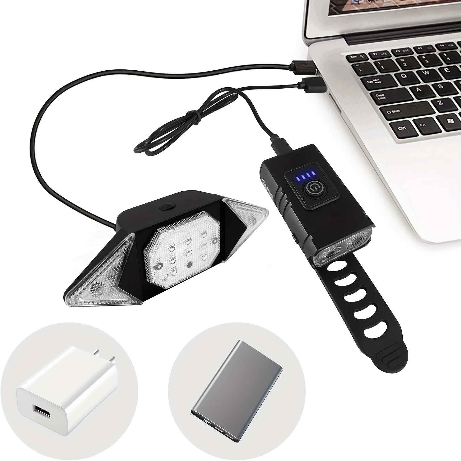Rechargeable Dual Front and Rear Bike Lights with Super Bright Headlight, Taillight, Turn Signal, Easy-to-Install Safety Flashlight for Night Riding