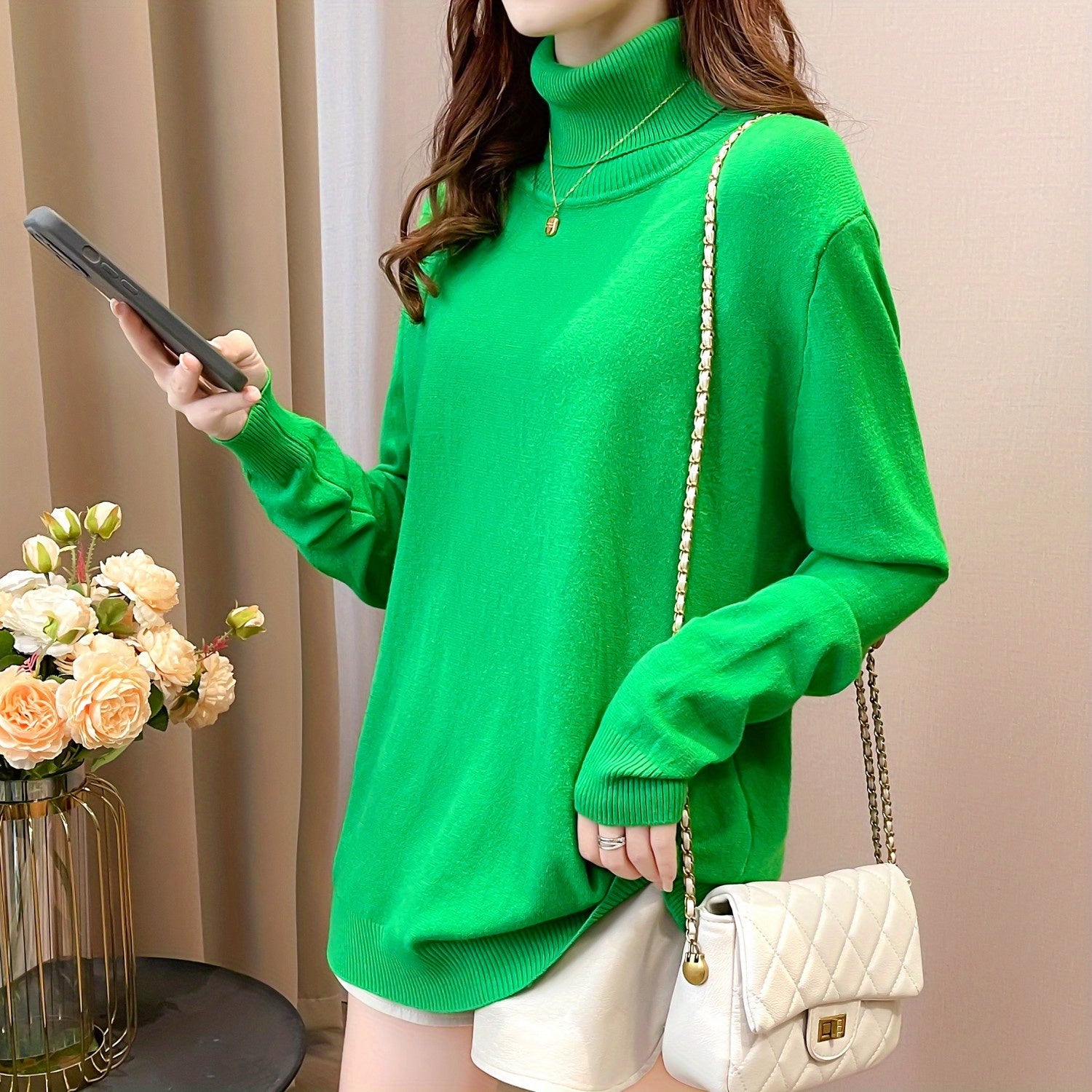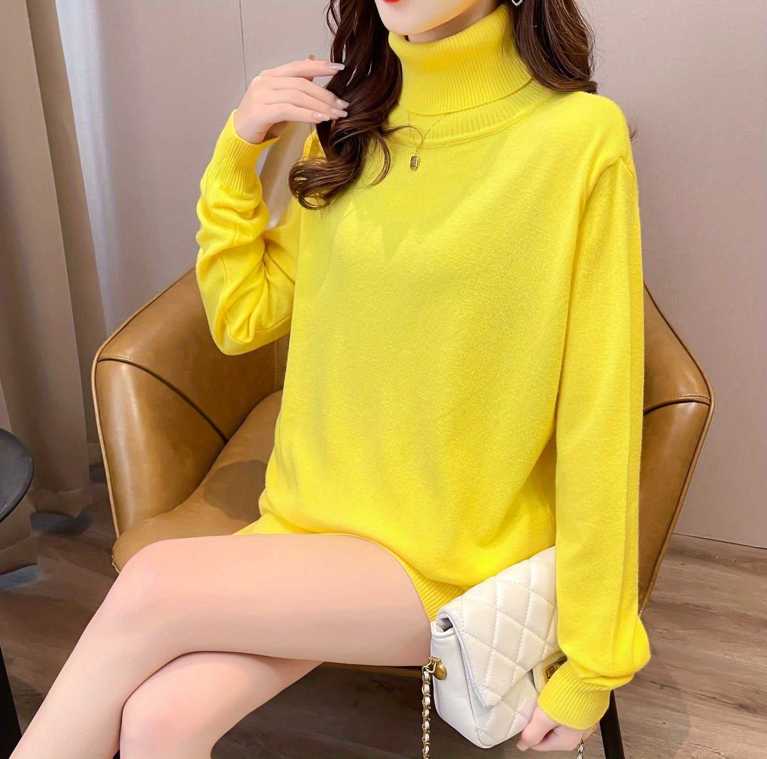Simple Solid Turtle Neck Knitted Sweater, Elegant Long Sleeve Sweater For Fall & Winter, Women's Clothing