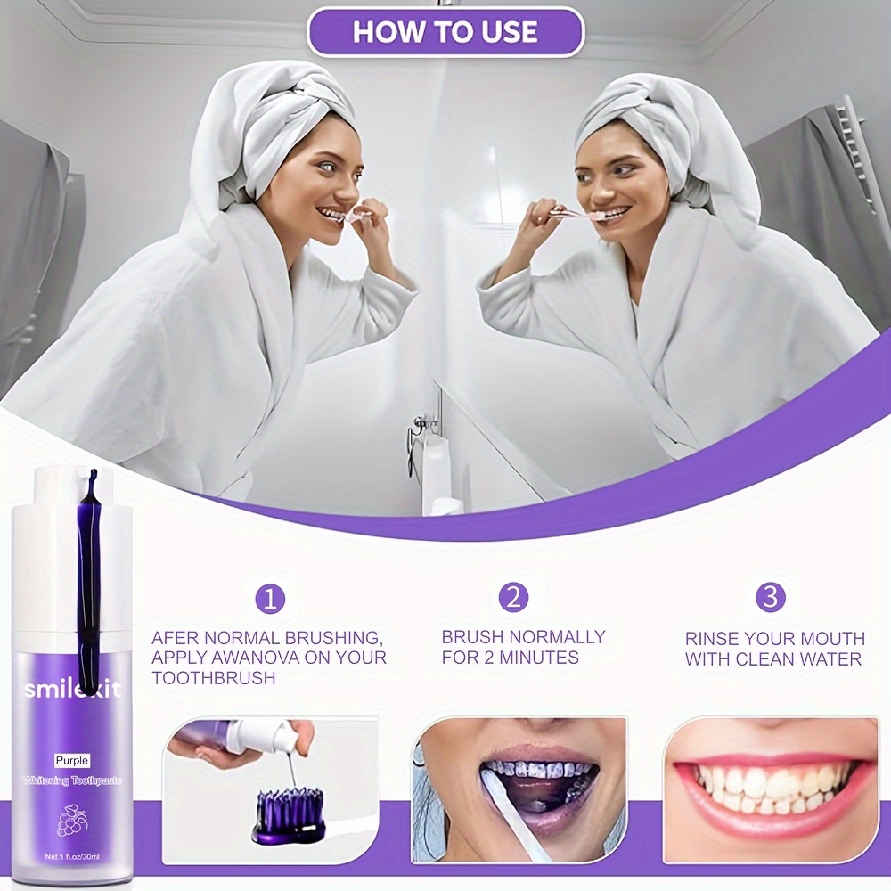 SMILEKIT Purple Whitening Toothpaste, Grape Flavor, Deep Clean Formula for Fresh Breath, 1-Pack Paste