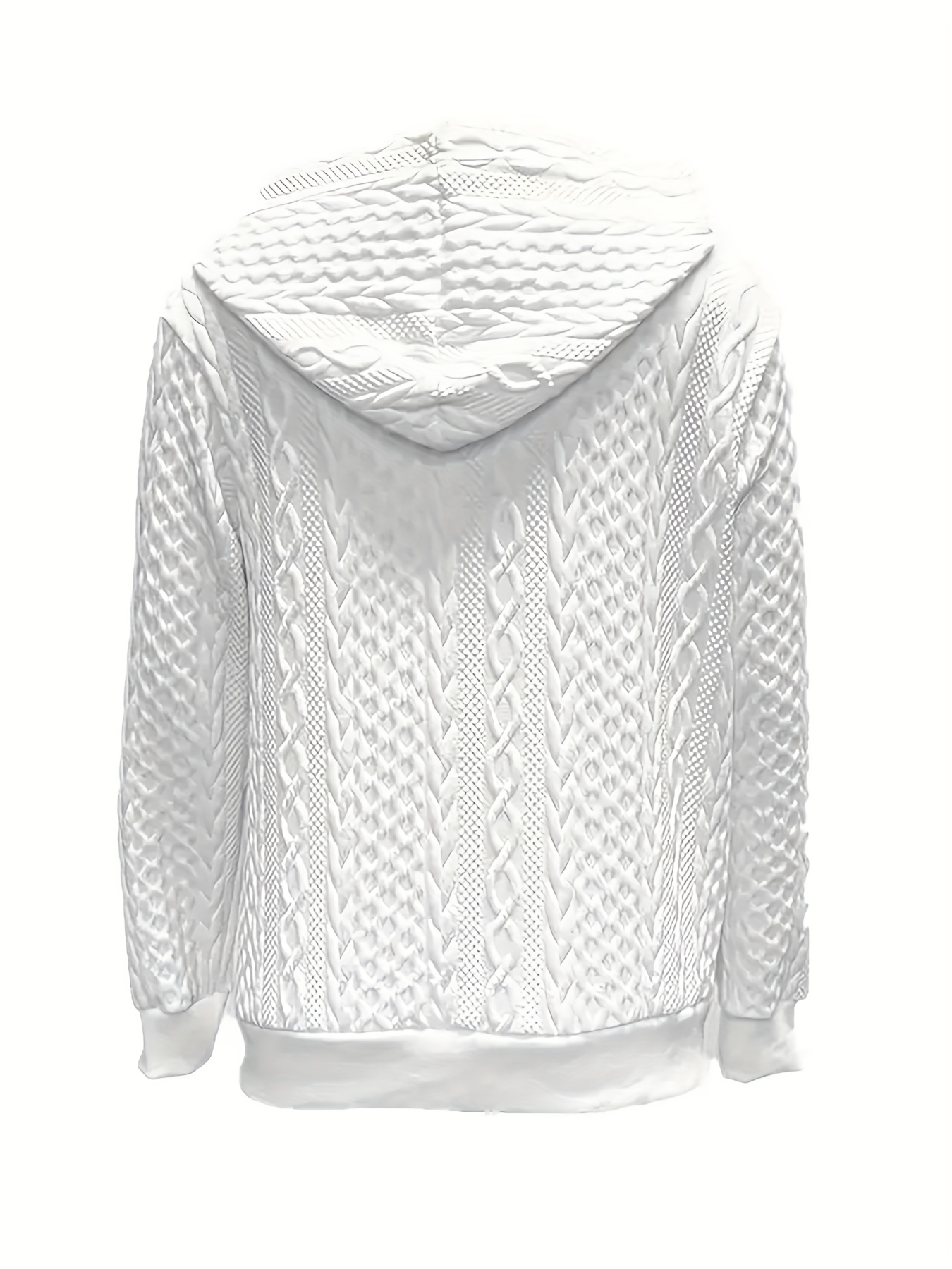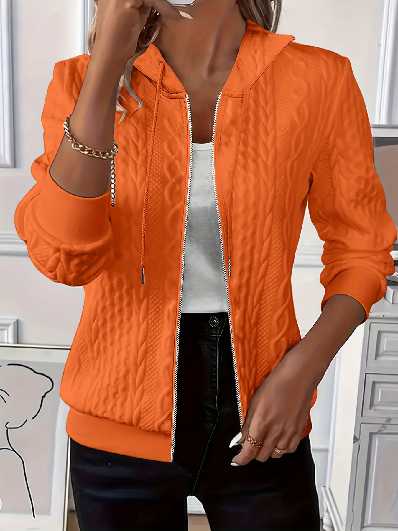 Stylish and Elegant 2025 Autumn/Winter New Arrival Solid Color Casual Jacket, Light Beige-Friendly Fabric Open Front Hooded Coat with Zipper Drawstring Long Sleeve Women's Pullover