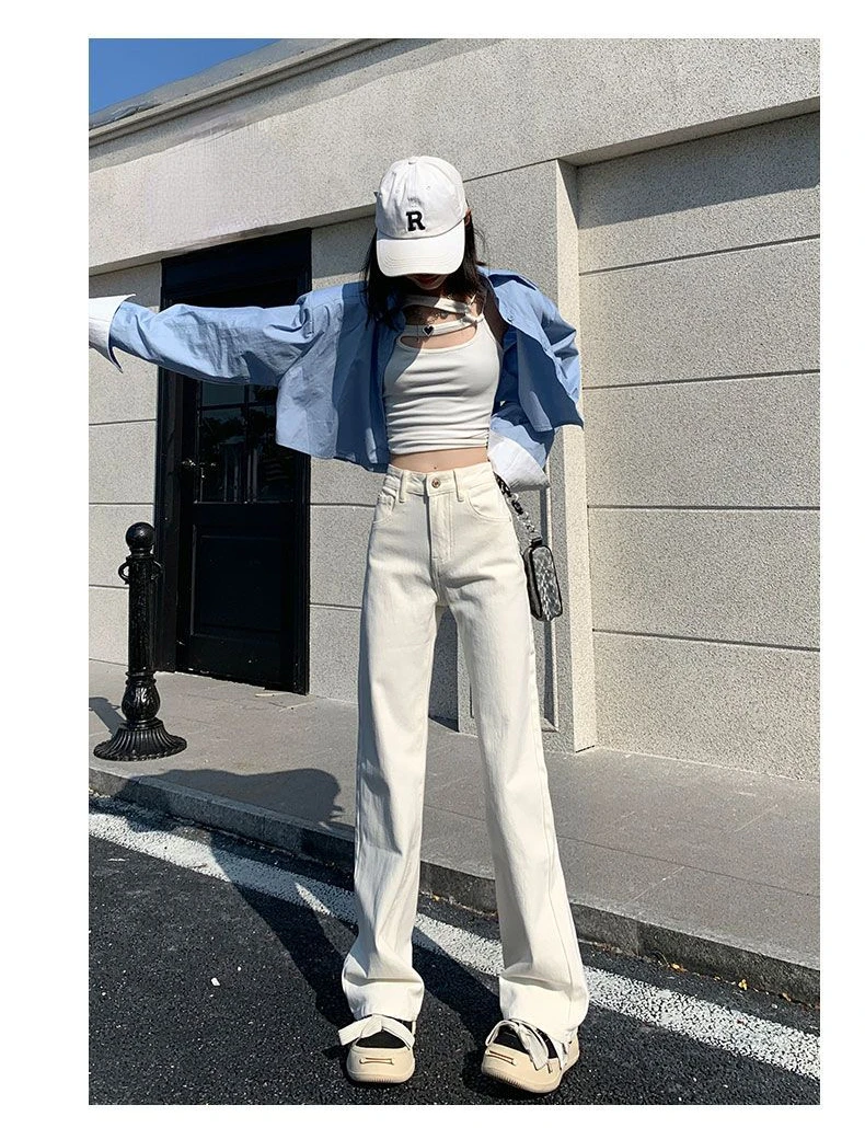 White High Waisted Jeans for Women White Y2k Wide-leg Baggy Jeans Slim Korea Fashion Women's Straight Denim Pants Streetwear