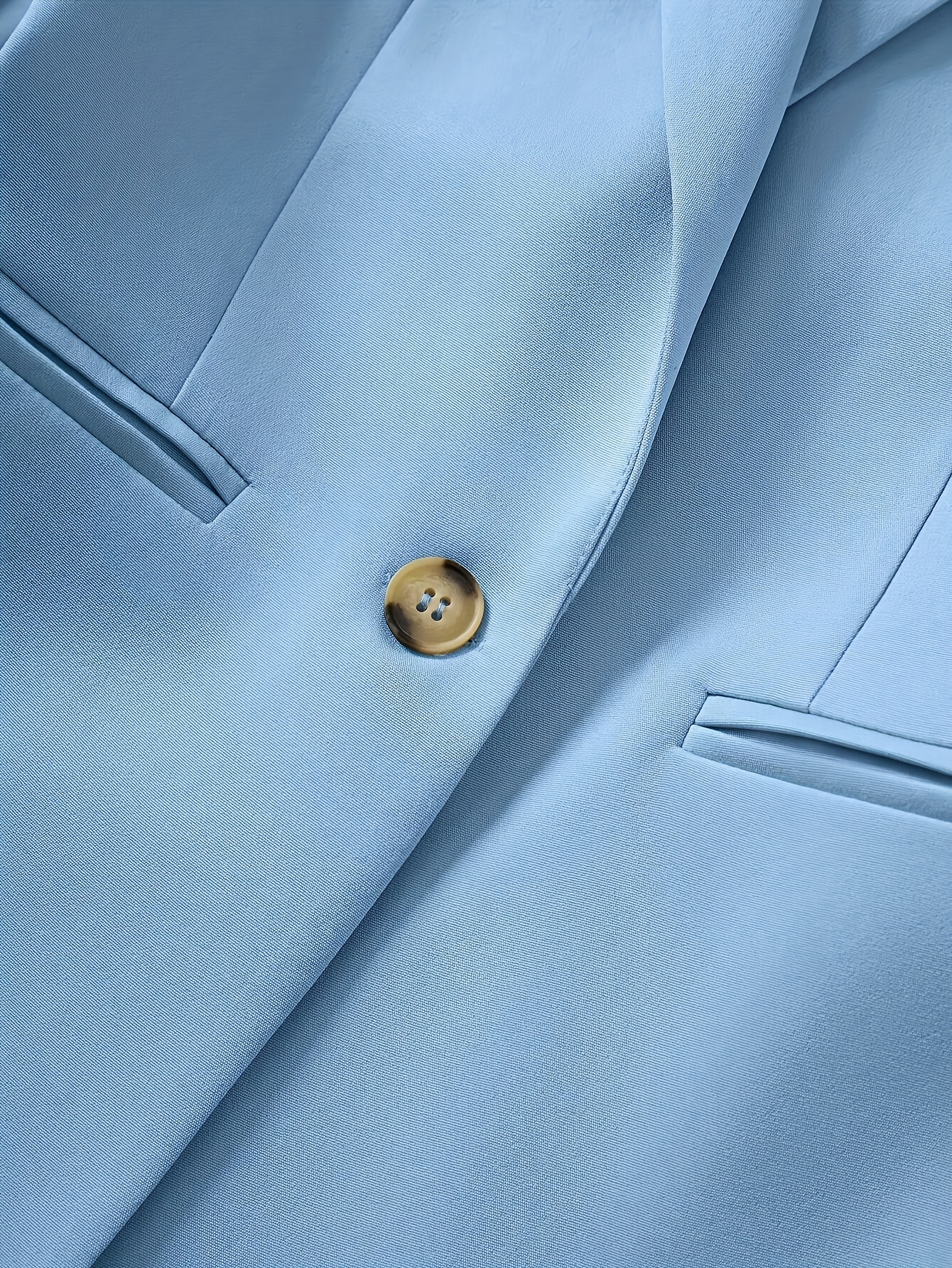 Women'S 2pcs Minimalist Suit Set - Light Blue Single-Breasted Blazer & Pants with Notched Lapel, Long Sleeves, and Button Details for Office or Casual Wear, Spring/Fall Collection, Office Attire | Notched Lapel Blazer | Butto