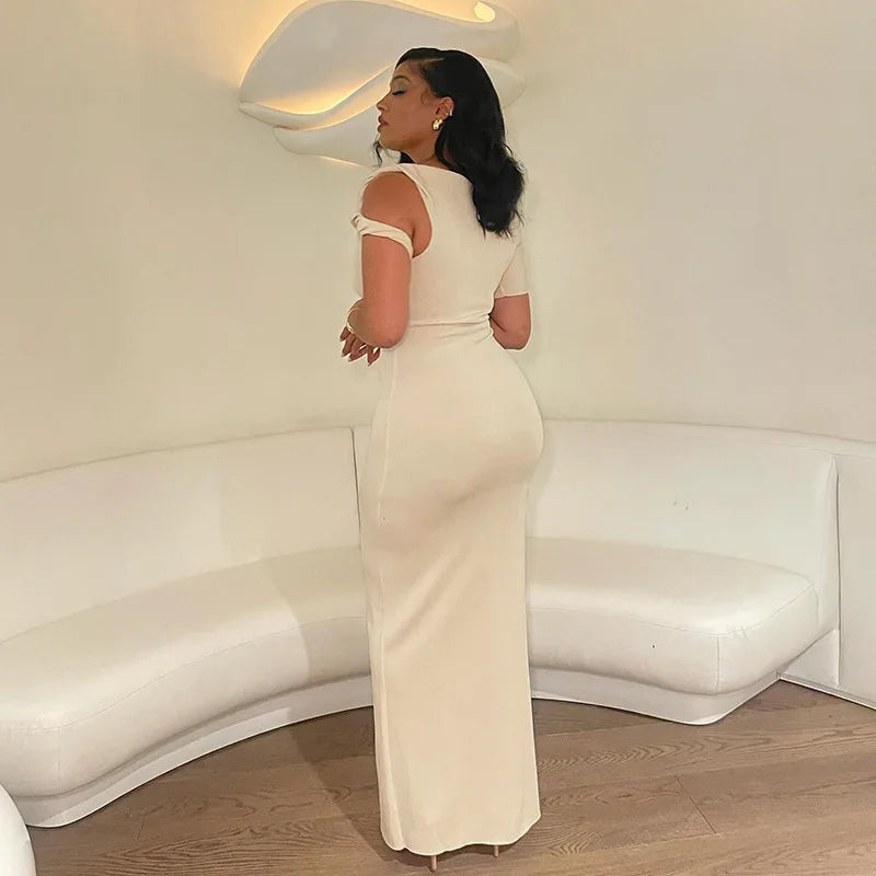 Women's clothing 2025 new fashion trend sexy spicy girl slim fit elegant sloping shoulder dress