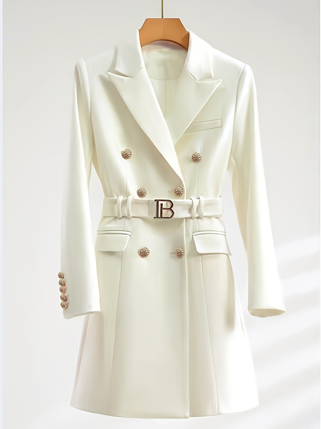 Women's Elegant Structured Blazer coat - Chic Business office & Formal events, with Belt - Notable, - Autumn/Winter, - Non-Stretch Professional Outerwear, Autumn Fashion, Luxury Button Details, Corporate Attire, Classic Silho