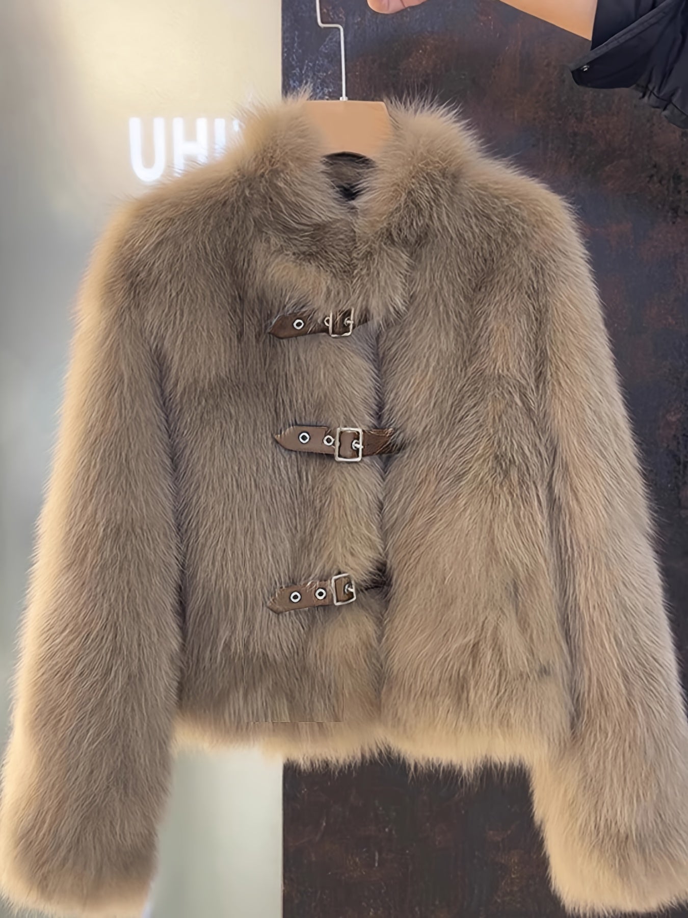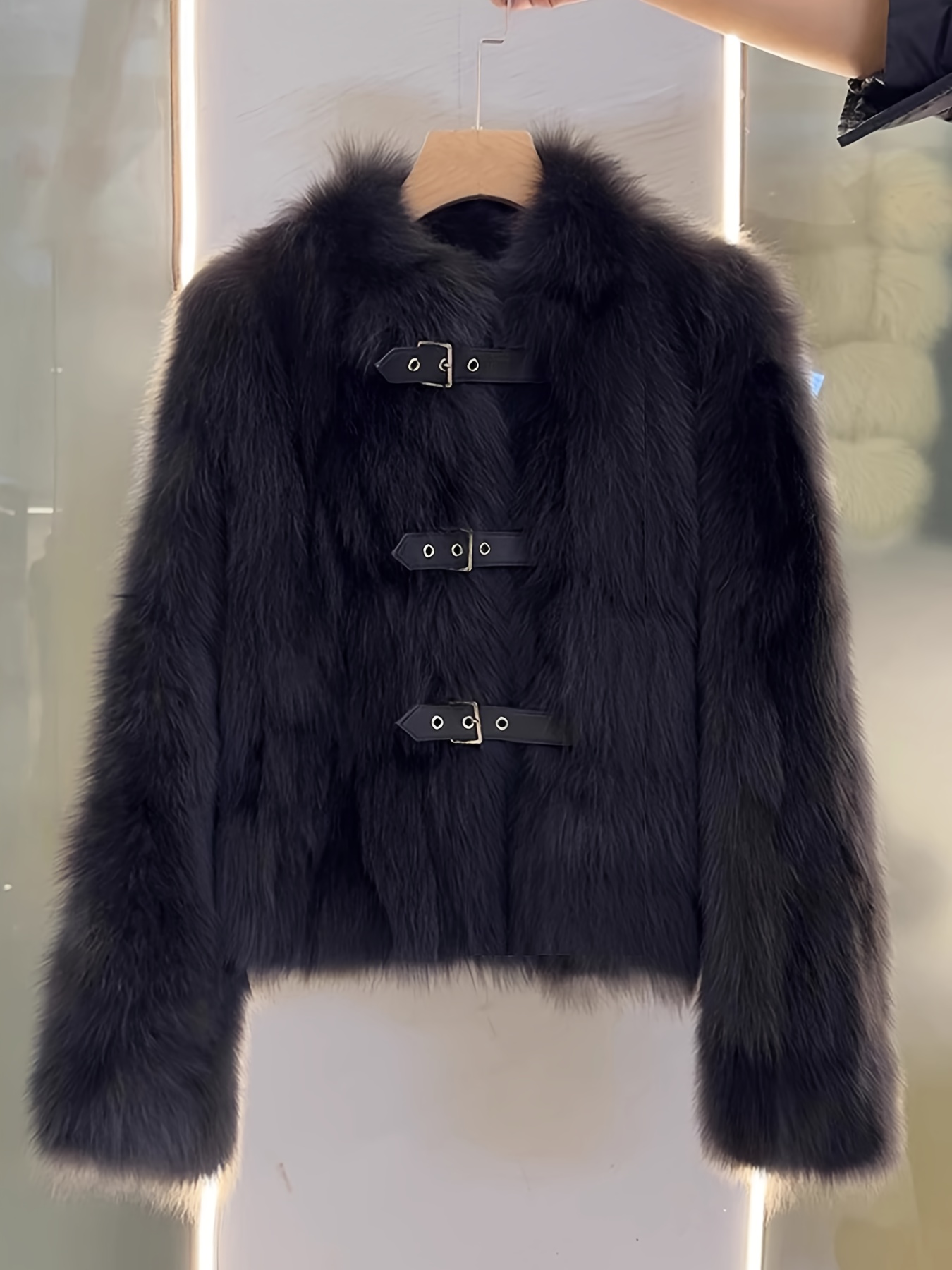 Women's Luxury Plush Fur Coat - White Fox-like Fur Jacket with Single-Button Front Closure, H-Line Silhouette & Beltless Design | Winter Warmth, Loose Fit Long Sleeve Winter Coat for Fall/Winter | Solid Color (No Pattern) | H